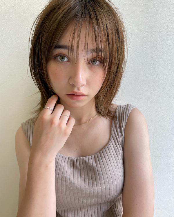 外国人風ハイトーンカラー×切りっぱなしボブ
